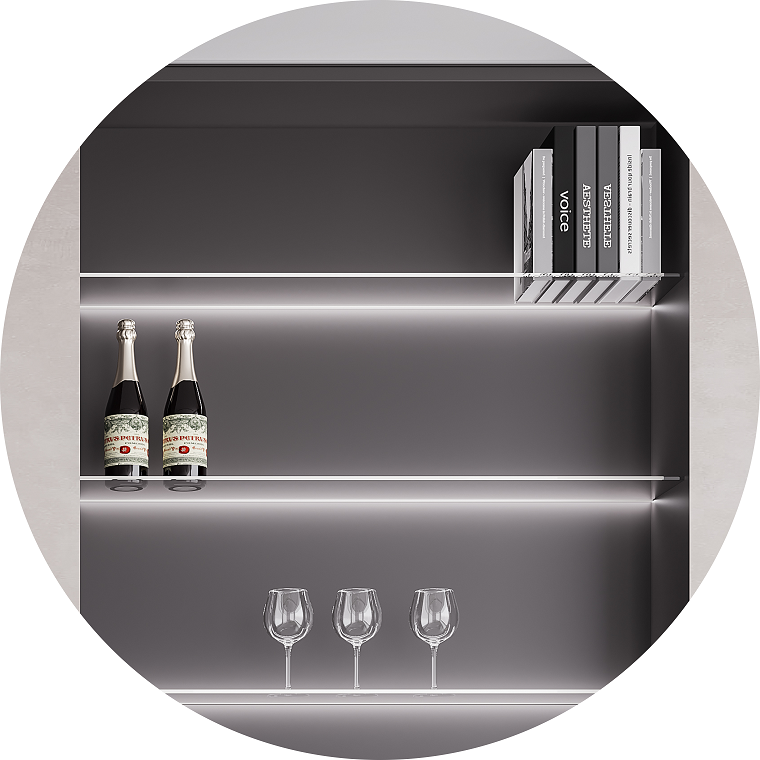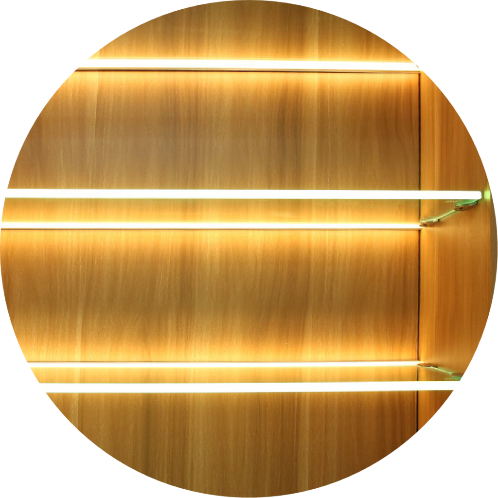 To maintain a clean aesthetic, “Halo” incorporates hidden wiring that routes cables through pre-made grooves in the wood panels. The wire runs along the side grooves and passes through the back panel of the closet, allowing only the stunning lights to be visible—keeping your space tidy and free from unsightly wires.