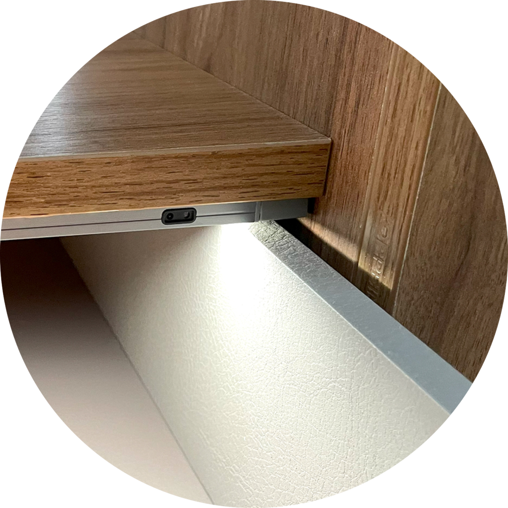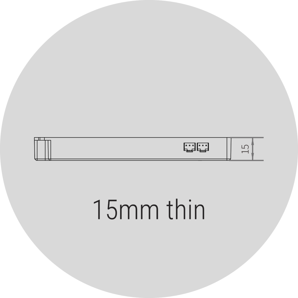 “King” features a slim 15mm thickness, and palm-size, making it perfect for recessed installation or discreetly hiding behind the back or top panels of cabinets. With standard wood panels typically measuring 18mm thick, this compact design ensures a seamless fit, allowing you to maintain a clean and unobtrusive aesthetic in your furniture. This thoughtful design not only enhances the visual appeal of your space but also maximizes functionality by keeping the lighting system concealed yet accessible.